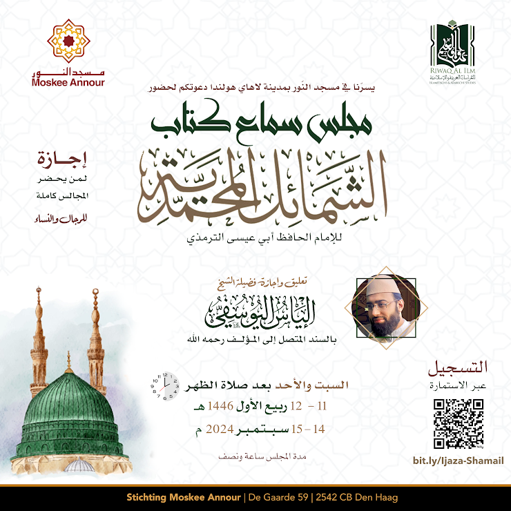 Tijdens deze bijeenkomst zullen we het boek Ash-Shama’il Al-Muhammadiyyah van de grote imam en hadithgeleerde, Al-Hafidh Abu Isa At-Tirmidhi, volledig lezen en bestuderen. (voor broeders en zusters)