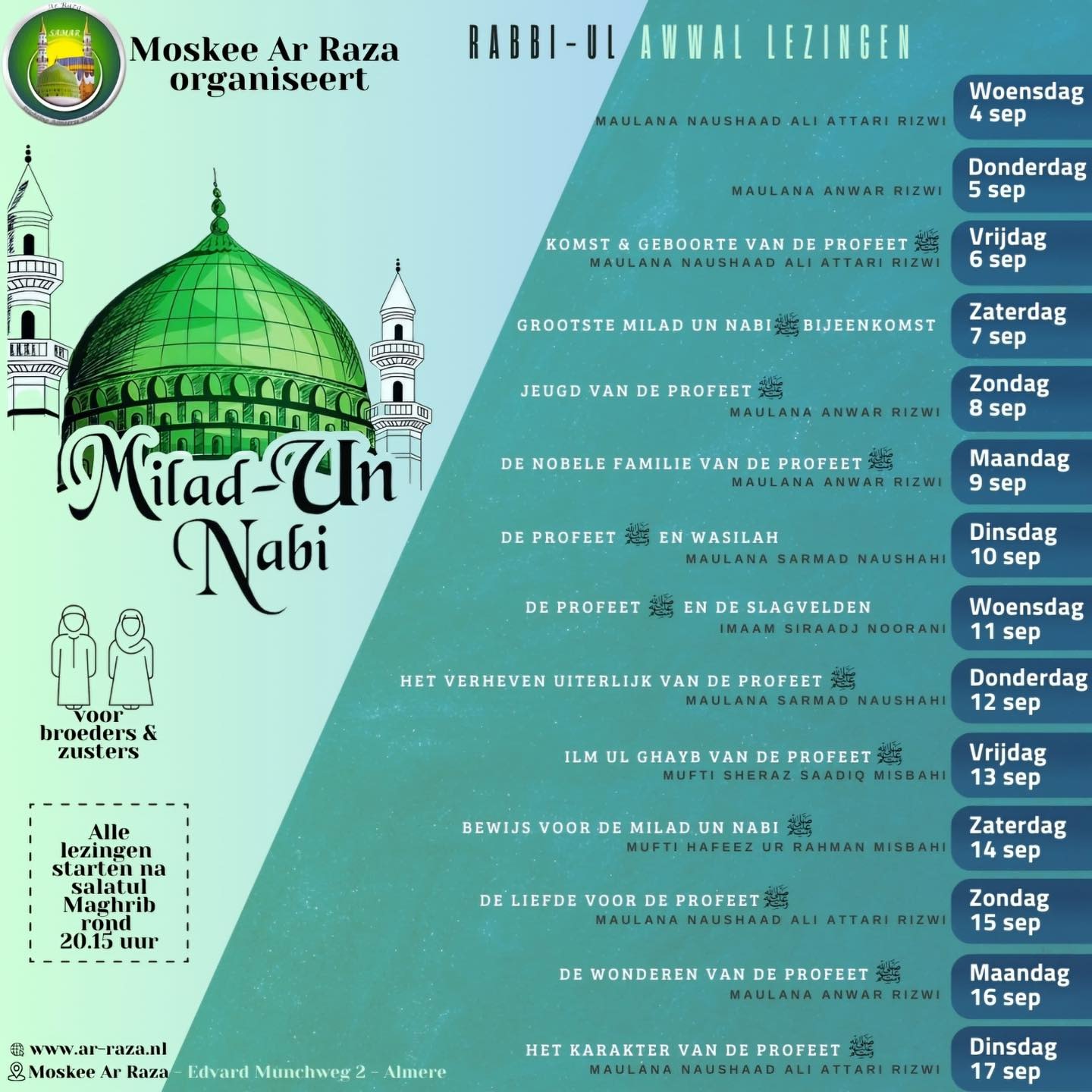 Alle lezingen starten na Salatul Maghrib, rond 20:15 uur.